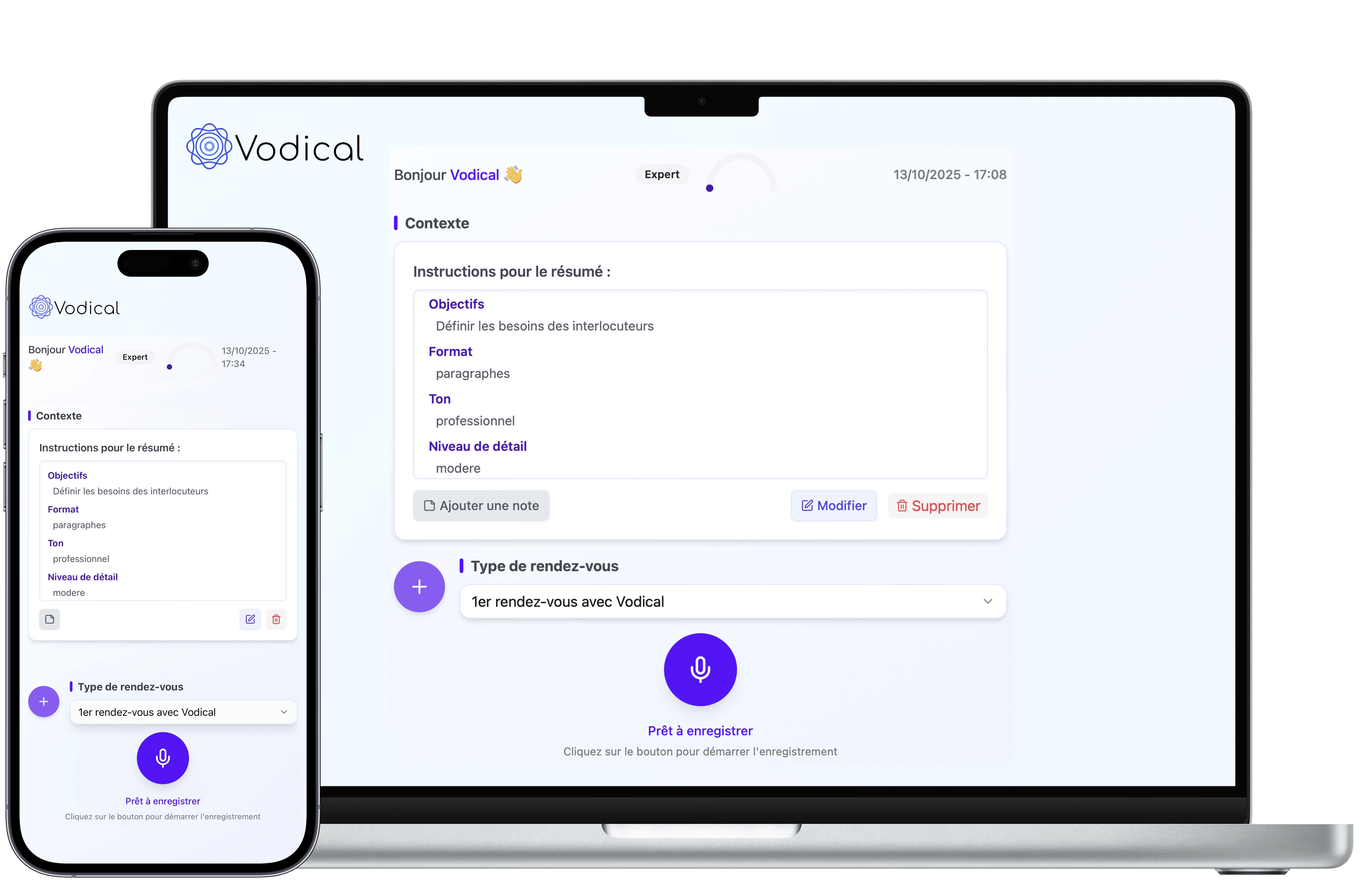 Vodical automatise vos résumés tout en respectant votre style et vos habitudes professionnelles.